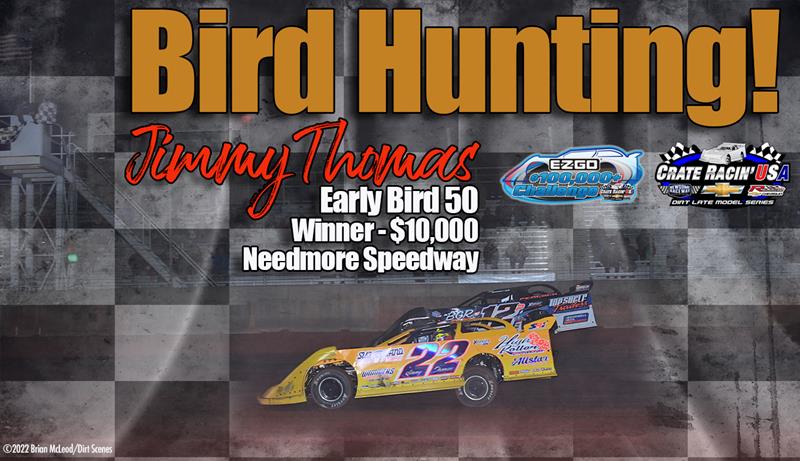 NORMAN PARK, Ga. (Nov. 19) — A dramatic points battle for the E-Z-GO $100,000+ Challenge championship was on the horizon entering the Early Bird 50 Saturday night at Needmore Speedway, and Phenix City, Ala., driver Jimmy Thomas held a tight-fisted, 20-point edge over Jason Welshan in a tense duel for the $5,000 title as the Newsome Raceway Parts Crate Racin’ USA Dirt Late Model Series arrived at the 3/8-mile oval.