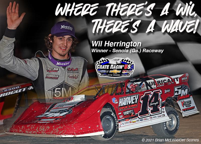 SENOIA, Ga. (June 5) — It didn’t take long for Wil Herrington of Hawkinsville, Ga., to establish himself as the odds-on favorite to claim a $2,500 prize in the 40-lap Newsome Raceway Parts Crate Racin’ USA Dirt Late Model Series event Saturday night at Senoia Raceway.